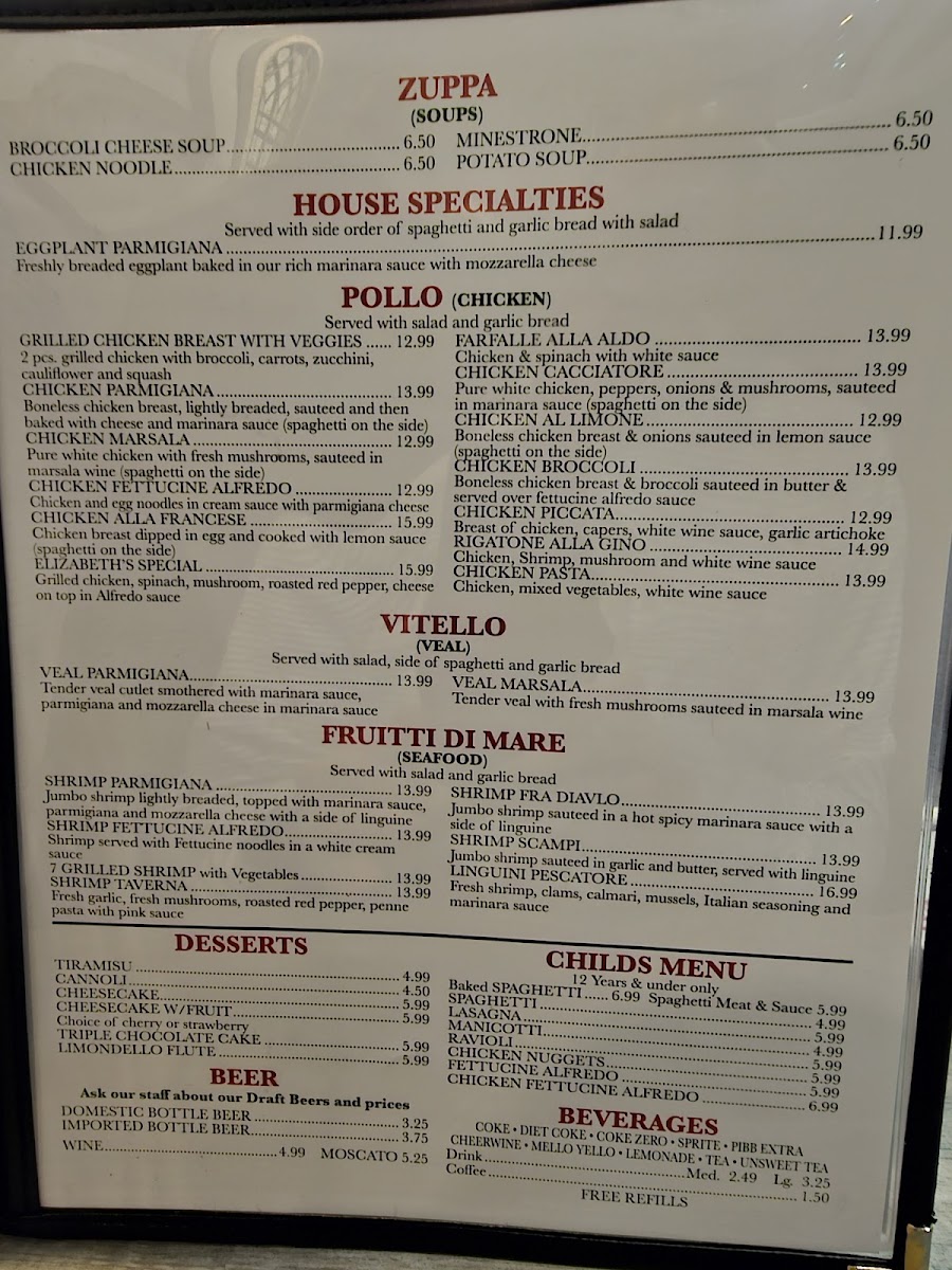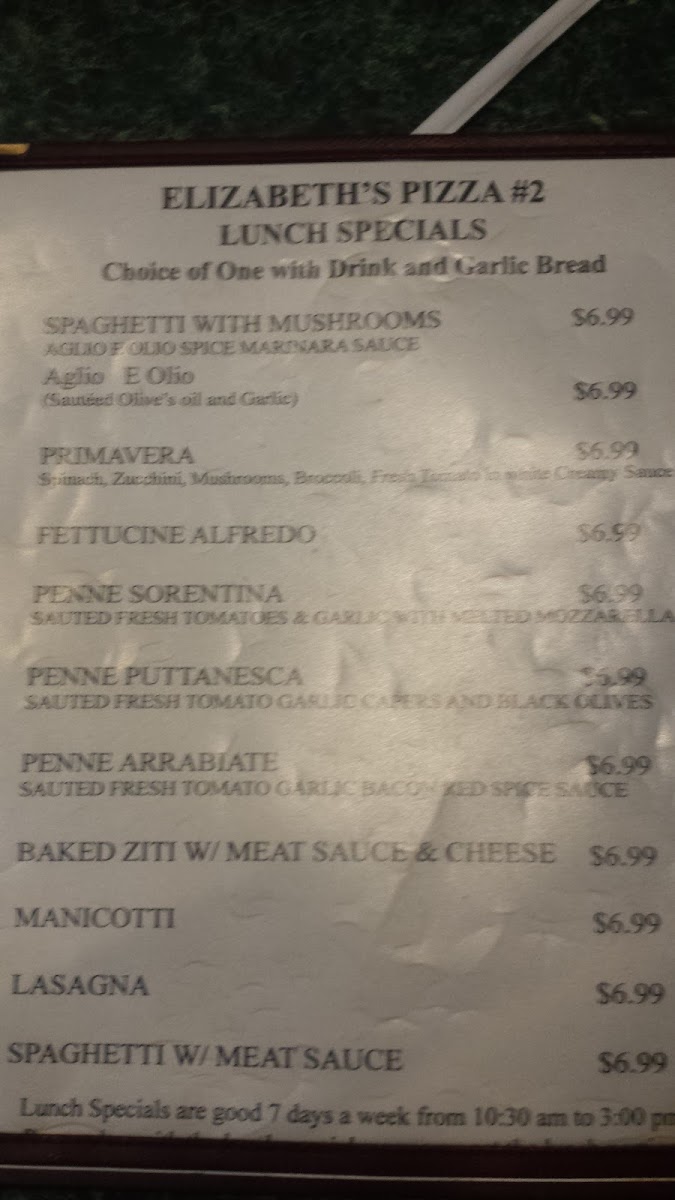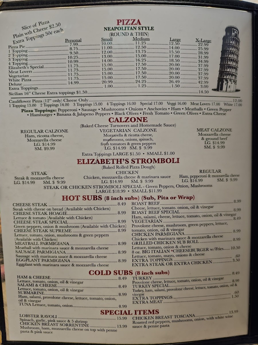 Elizabeth Pizza & Restaurant Menu (2025 Update)