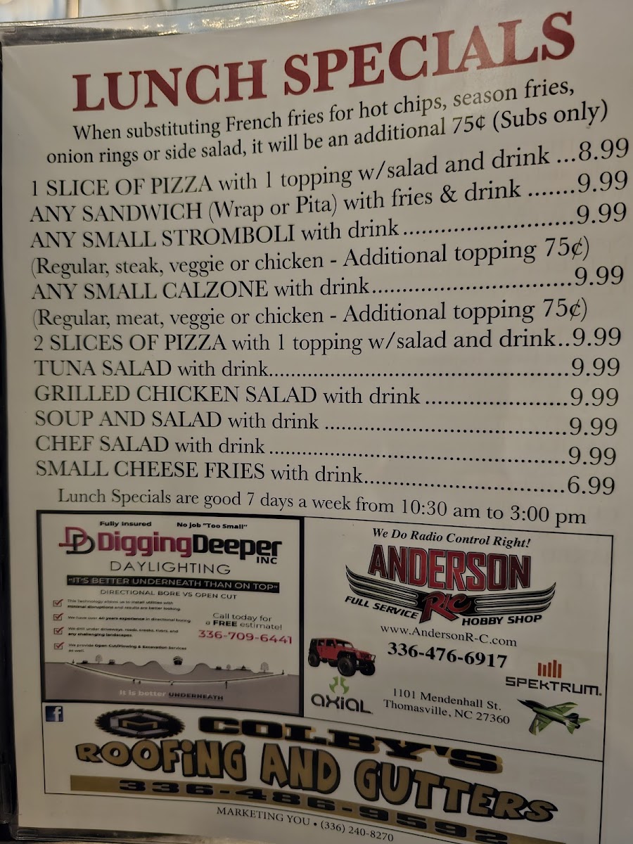 Welcome to Elizabeth Pizza & Restaurant, a hidden gem located at 1587 Liberty Dr, Thomasville, NC, known for its authentic Italian cuisine. Renowned for their mouthwatering pizzas, diners rave about the quality, particularly highlighting the veggie pizza and the deliciously cheesy New York-style offerings. Customers appreciate the generous portions and affordable prices, making it a local favorite for families and pizza lovers alike.
